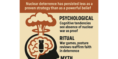 Nuclear Conviction argues that nuclear deterrence endures not because it is proven effective, but because it functions as a powerful belief system—cognitively reinforced by the human tendency to see absence of war as proof of deterrence, emotionally sustained by rituals of stoicism and control, and institutionally reproduced through war games, posture reviews, and strategic narratives that sacralize the bomb as a symbol of national identity and order. By mythologizing “successes” like the Cuban Missile Crisis and erasing inconvenient cases like Korea or Kargil, strategic elites have turned deterrence into a kind of civil religion, one resistant to critique and inherited across generations as both trauma and orthodoxy. Counter-belief traditions, from hibakusha testimony to ICAN’s humanitarian framing, challenge this orthodoxy by foregrounding ethics, empathy, and human costs—but the deterrence myth persists because it provides states with coherence, legitimacy, and the illusion of control in the face of existential dread. The book ultimately asks: if deterrence is a story we tell to survive, can humanity learn to believe otherwise